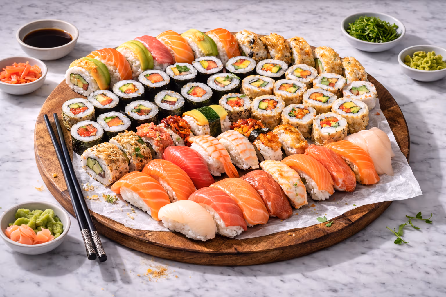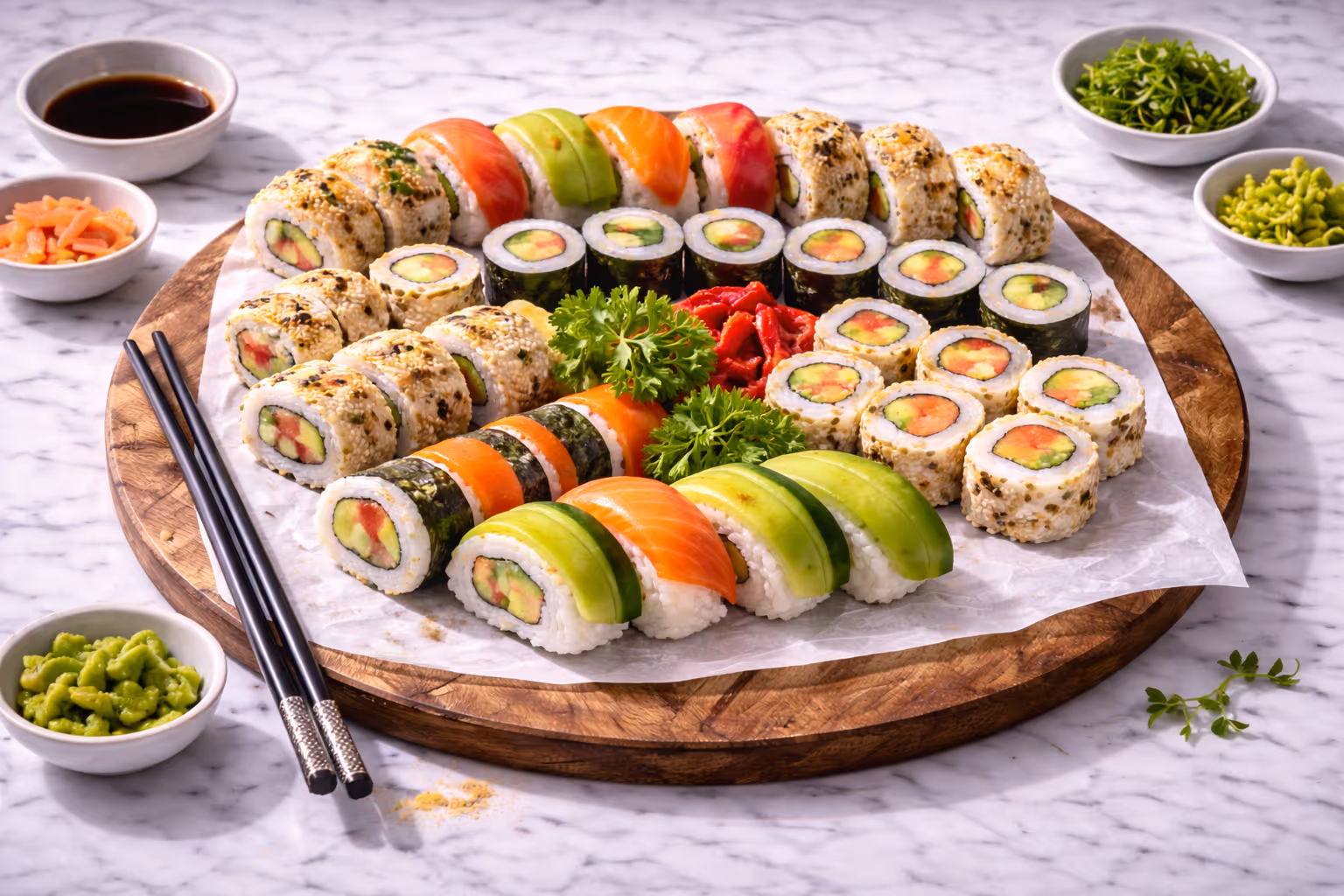 Our sushi range is prepared fresh with carefully selected ingredients and clean, balanced flavours. Ideal for meetings, client hosting, and special occasions, these platters offer an elegant, light option that’s easy to serve and always impressive. Consistent quality, beautifully presented, and ready for delivery.